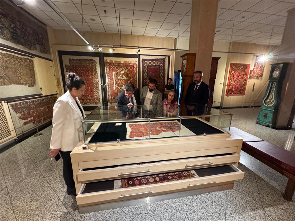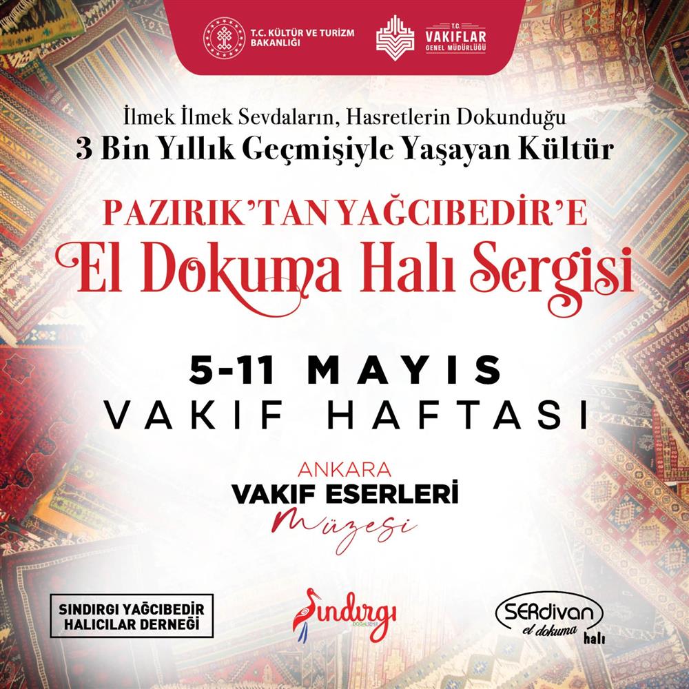 5–11 Mayıs Vakıf Haftası etkinlikleri kapsamında, Ankara Vakıf Eserleri Müzesi’nde açılan “Pazırık’tan Yağcıbedir’e El Dokuma Halı Sergisi” sanatseverler ve kültür meraklıları tarafından ilgiyle karşılanmaktadır. İl Müdürümüz Sayın Erhan KARAKAYA da sergiyi ziyaret ederek, el dokuma halıların sahip olduğu tarihî ve kültürel mirasa dikkat çekmiş, bu değerlerin gelecek kuşaklara aktarılmasının önemine vurgu yapmıştır. Zengin motifleri ve özgün desenleriyle ziyaretçilerini geçmişten günümüze uzanan bir yolculuğa çıkaran sergi, 11 Mayıs 2025 tarihine kadar Ankara Vakıf Eserleri Müzesi’nde ziyaret edilebilecektir. Kültürel mirasımıza tanıklık etmek isteyen tüm vatandaşlarımızı sergimize bekliyoruz.