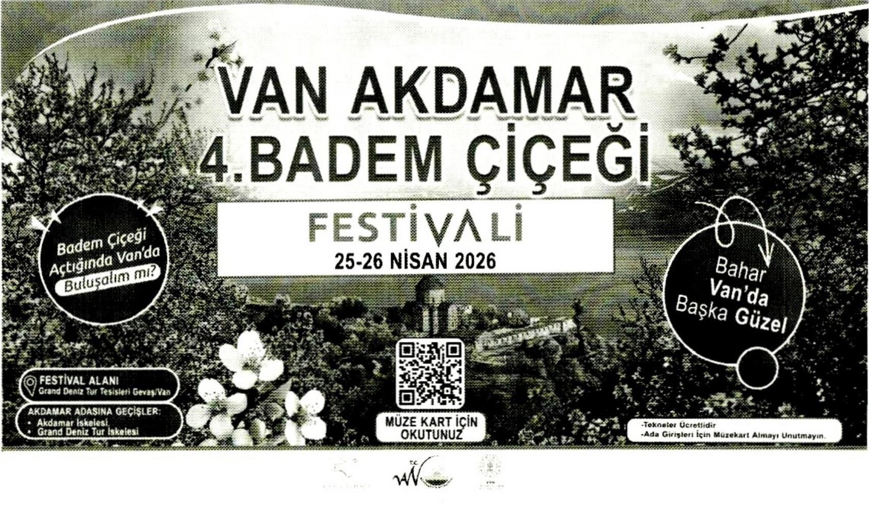 Akdamar Badem Çiçeği Festivali, 25-26 Nisan 2026 tarihlerinde Van ilinde gerçekleştirilecektir. Zengin tarihi ve kültürel mirası ile öne çıkan Van’da, bahar aylarında Akdamar Adası’nda badem ağaçlarının çiçek açmasıyla oluşan görsel şölen, ilin önemli turizm değerlerinden biri olarak dikkat çekmektedir.